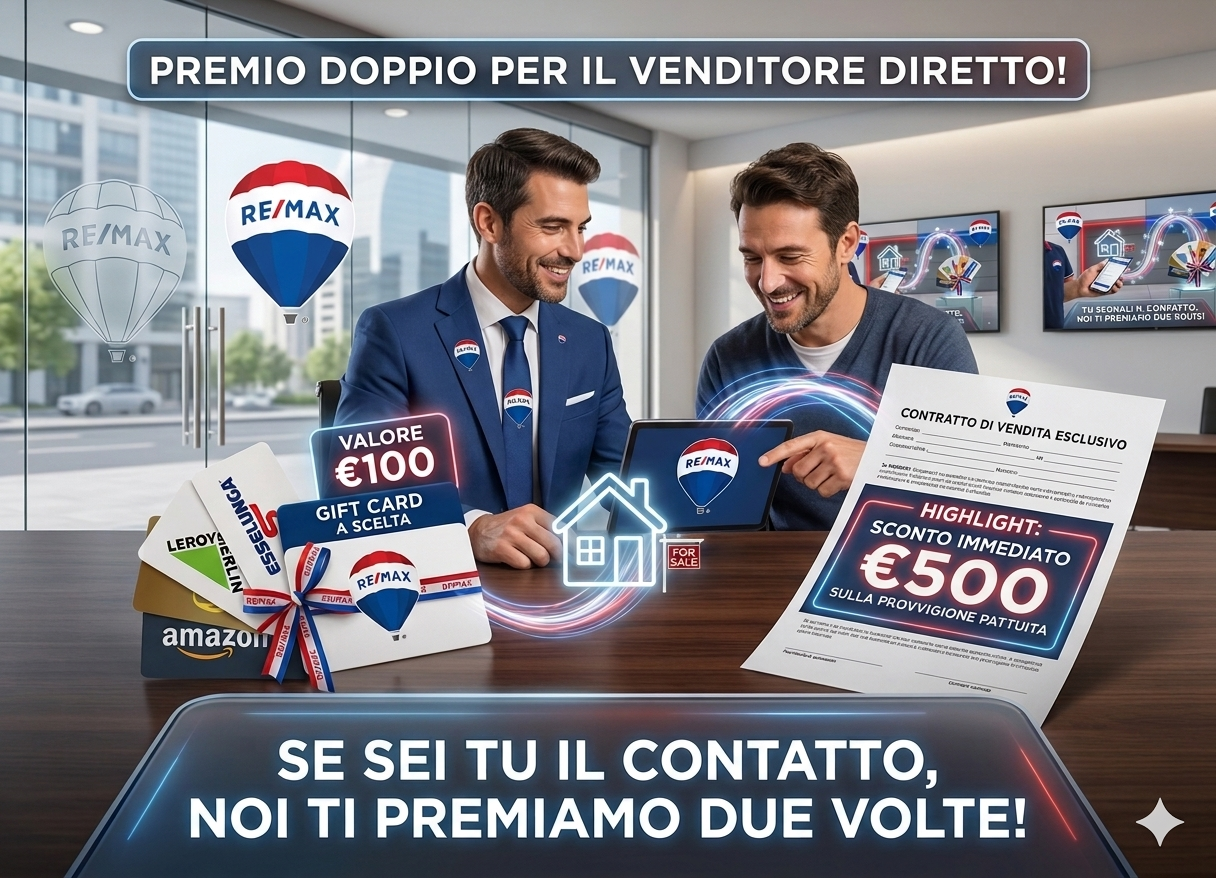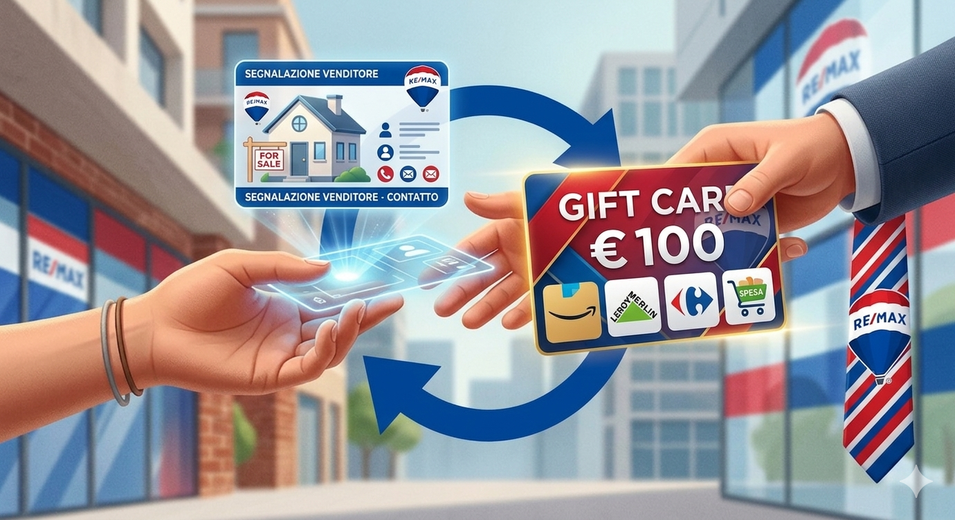 Segnalandoci una persona interessata a vendere casa e alla conferma dell’incarico di vendita, riceverai immediatamente buoni omaggio esclusivi come ringraziamento per la tua fiducia.